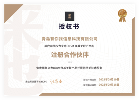 青島有你我信息科技有限公司于2019年與來也科技達成戰(zhàn)略合作伙伴關系,擁有中高級工程師若干名,具備強大的交付能力,目前已成為膠東半島交付中心。